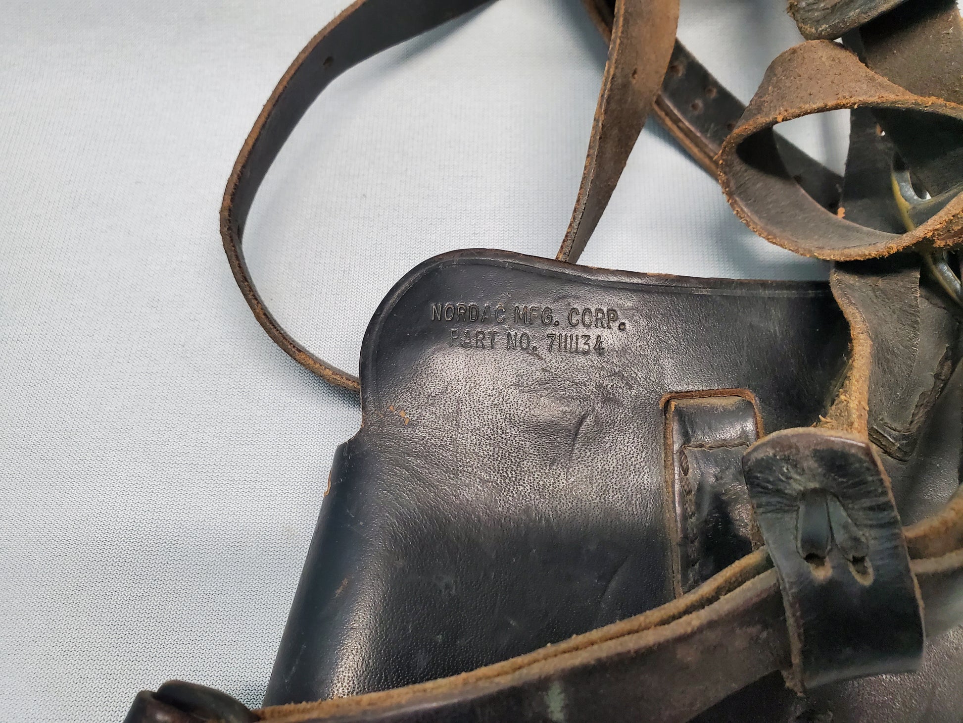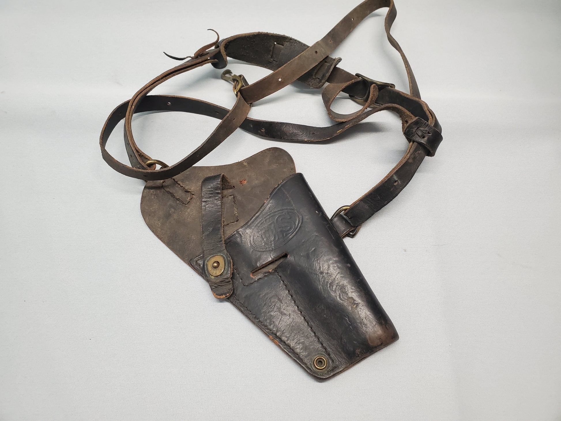 This is a standard M7 U.S. Military shoulder holster, used by the US Military from 1940 to the early 2000s. This holster is a original, has signs of heavy use. Missing the snap closure post