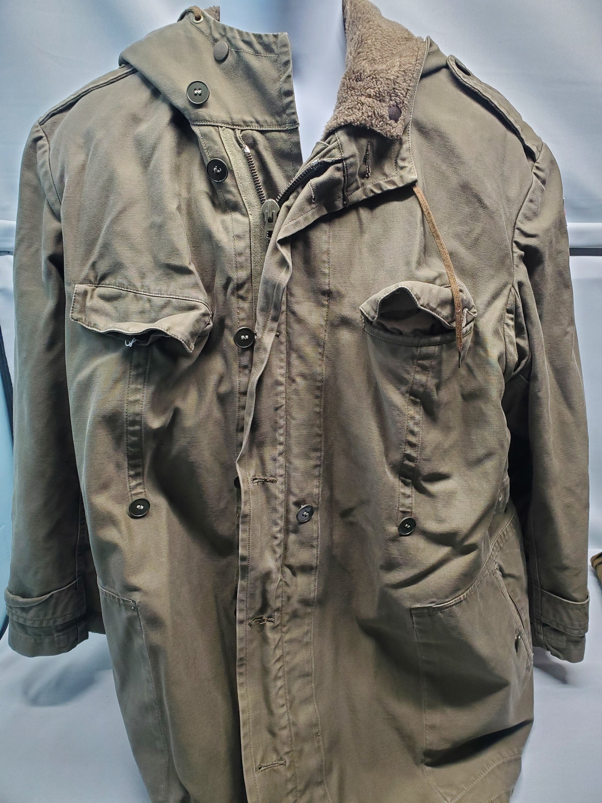 This parka is very warm in cold weather, with the pile liner, 2 breast and waist pockets and zipper front closure. Grab this one while it is still here.